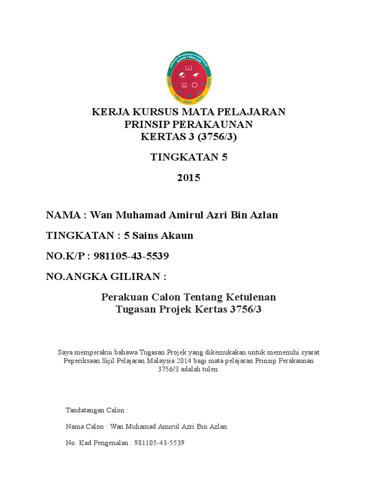 5 i kerja kursus prinsip perakaunan 2021malay versioncadanganrumusanemk. PRINSIP AKAUN siap 40 dokumen. Contoh kerja kursus pakaun tahun 2011.